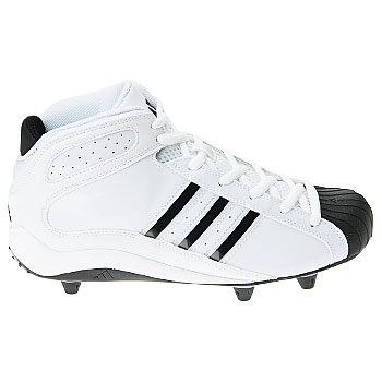 Be on the winner's list in the powerful Pro Color D Mid football cleats from adidas. Faux leather upper in a performance football cleat style with a round rubber toe. Three-quarter cut provides great stability for speed players requiring more support. Customized striping detail, lace-up front. Textile lining, EVA insole, compression-molded EVA cushioned midsole, injected TPU detachable cleat outsole.
