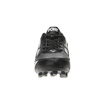 Sprint the field with the supportive Pony Moss 1 Low football cleats. Polyurethane upper in a low profile football cleat style with round toe. 6-eyelet lace up front with padded tongue and raised heel collar for secure fit. Sporty perforated sidewall overlays and stitched scuff resistant toe. Breathable mesh lining with shock absorbing cushioned insole. Flexible scuff resistant midsole and durable outsole with fixed studs.